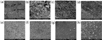 | Fig. 2. SEM images of the surface of graphite composite plates with different particle sizes: (a) 100 mesh, (b) 200 mesh, (c) 325 mesh, (d) 500 mesh, (e) 1000 mesh, (f) 1500 mesh, (g) 2000 mesh, (h) 2500 mesh. | |