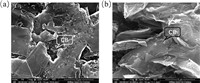 | Fig. 4. Distribution of conductive carbon black in graphite composite plates. (a) surface, (b) section. | |