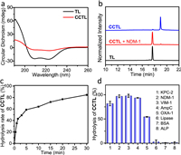 Moreover, other β-lactamases, such as KPC-2 (class A bla), VIM-1 (class B bla), AmpC (class C bla) and OXA-1 (class D bla), were also tested with CCTL and all resulted in the release of free TL as the major product (Fig. 2d). In contrast, the incubation of CCTL with other proteins, for instance, catalytic alkaline phosphatase (ALP), lipase or non-catalytic bovine serum albumin (BSA), gave rise to no free TL at all, demonstrating the high specificity of CCTL to β-lactamases over other proteins.