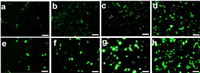 | Fig. 3. Transfection experiments performed with 2 µg pF143-GFP plasmid DNA and peptide 1 (a, e), 2 (b, f), 3 (c, g), PEI (d, h) to HeLa cells for different periods (a–d: 24 h, e–h: 48 h). Scale bar: 50 µm. | |