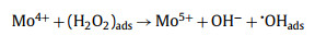 Thus, an overall mechanism of H2O2 activation by MoS2 in illuminated and dark conditions was proposed (Fig. 3d). First, H2O2 was adsorbed on the surface of MoS2 and subsequently decomposed into •OHads by Eq. 1. Then, the •OHads was separated from the surface to become •OHfree for MB degradation (Eq. 2). Simultaneously, Mo5+ returned to Mo4+ following Eq. 3. However, in the dark, •OHads desorption from MoS2 was difficult because it was an endothermic reaction [15]. Thus, no obvious differences in MB degradation were observed between 2H-MoS2 and 1T-MoS2 because •OHads was not able to enter the solution to oxidize MB. Under light irradiation, it was speculated that the energy of the light may accelerate the desorption of •OHads. Thus, more •OHfree participated in the oxidation [32]. Furthermore, the MoS2 can be excited by the light to form photoactives of h+, •OH and •O2− through Eqs. S1-S6 (Supporting information). The photogenerated electrons can also help the recycling of Mo4+/Mo5+ (Eq. S7 in Supporting information). All of these led to a higher removal efficiency under light irradiation. The superior performance achieved by 1T-MoS2 was mainly due to the faster charge transfer rate of the 1T metallic phase than that of 2H-MoS2.