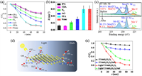 | Fig. 3. (a, b) Effects of radical scavengers on MB degradation by 1T-MoS2 in light. (c) XPS spectra of Mo 3d before and after the reaction. (d) Effects of NaF in dark and light systems. (e) Proposed Fenton-like mechanism of MoS2/H2O2 systems with or without light irradiation. Conditions: [MB] = 10 mg/L, pH0 3.0, [MoS2] = 0.05 g/L, [H2O2] = 1.0 mmol/L. | |