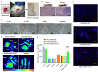 | Fig. 3. (A) Schematic illustration of the surgical operation to establish IMSCT. (B) H & E-stained sections from the spines of sham-operated rats and surgery rats. Scale bar: 100 µm. (C) Immunohistochemical staining of the C6 tumor-bearing spines. Scale bar: 100 µm. Accumulation of DiI in tumor sites and major organs (D) detected by ex vivo imaging and (E) quantitative analysis on day 5 post-injection of different formulations. (F) In vivo migration of MSCs in IMSCT slides observed under invert fluorescence microscope. Data were shown as mean ± S.D., n = 5, ***P < 0.001. | |