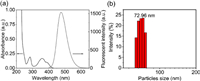 | Fig. 1. (a) UV–vis absorption and steady-state fluorescence emission spectra of HP-1 (10 µmol/L) in water (λex = 365 nm); (b) DLS analysis of 10 µmol/L HP-1. | |