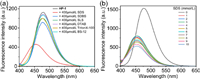 Surfactants are well-known amphiphilic molecules and usually self-assemble into supramolecular assemblies such as micelles and vesicles in aqueous solutions. These assemblies possess a hydrophobic core that could encapsulate hydrophobic fluorophores and tune the photophysical properties (fluorescence stability, fluorescence quantum yield, and fluorescence emission) and behaviors of the encapsulated fluorescent probe [16, 17]. Therefore, the strategy of using surfactant assemblies encapsulating fluorophores has been widely used to develop fluorescent sensors in term of simplicity and modulating ability. Up to now, this method has been explored in developing label-free fluorescent sensors to detect proteins for the noncovalent interactions between proteins and surfactant assemblies [18-20]. Moreover, surfactant micelles could also be utilized as membrane mimetics for structure determination and functional analysis of proteins [21, 22].