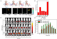 | Fig. 2. Endogenous and exogenous fluorescence imaging and PA imaging in living mice. (A) Exogenous PA imaging of mouse leg. (ROI) L was injected with CDR (100 µL, 30 µmol/L) for 30 min, (ROI) R was injected with NEM (100 µL, 1 mmol/L) for 3 h and then injected with CDR (100 µL, 30 µmol/L) for 30 min after imaged inject of exogenous Cys (50 µL, 1 mmol/L). (B) Image of experimental data of exogenous PA in mice. (C) Fluorescence imaging of mice with different degrees of liver injury. Three rats were injected CDR (100 µL, 30 µmol/L) through the tail vein and then injected separately with APAP (0, 150 and 300 mg/kg) through the tail vein to establish liver injury, and collect real-time fluorescence signal images under the excitation of 720 nm laser. (D) NIRF765 signal intensity values from (C). | |