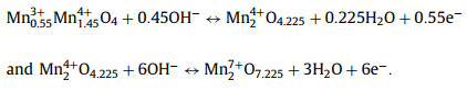 The supercapacitive performance of MnOx electrodes were investigated by cyclic voltammetry (CV), galvanostatic charge/discharge (GCD), electrochemical impedance spectroscopy (EIS) and cycling measurements. In Fig. 3a, CV curves of MnOx electrodes displayed distinct redox peaks, which originate from the reaction between MnOx and OH− in alkaline electrolyte [27]: