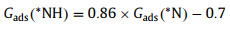 It is seen that the slope for Eq. 2 is 0.86. This slope is closer to 1 than the other two scale relationship, indicating that the free energy changes for N* → NH* are not sensitive on the investigated TM-N4. Thus, we chose the NO → NOH* and NH2* → NH3 as the basis for drawing the volcano activity scaling.