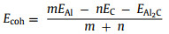 Al2C nanosheets are two-dimensional layered semiconductors with an indirect bandgap of 1.05 eV and two kinds of bond lengths corresponding to 1.965 and 2.570 Å for C-Al and Al-Al bonds in the absence of an applied electric field (Figs. 1a and b) as previously studied in the literature, respectively. In addition, the structure of Al2C is characterized by two types of rings, C2Al2 tetrads, and C2Al4 hexads. The stability of the structure under electric field needs to be verified before the gas adsorption test, so the Al2C structure was selected in the electric field range from −0.005 a.u. to 0.005 a.u. The stability of Al2C under electric field is discussed in terms of energy, kinetic and thermodynamic stability. The energy stability is illustrated by the following equation for the cohesive energy: