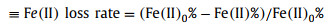 Given the existence of sulfur vacancy, experiments and characterization were carried out to clarify its role in FeSxOy-1:1-based Fenton system. Under nitrogen atmosphere, the catalyst was treated with sulfur powder to remove the sulfur vacancies on its surface. As shown in Fig. S16 (Supporting information), the XRD peak position of FeSxOy-1:1 remained basically unchanged compared with that before the treatment. The annealing treatment did not change the crystal form of the catalyst. As shown in Fig. S17 (Supporting information), after annealing, the defect concentration on the catalyst surface decreased significantly. FeSxOy-1:1 with less surface defects was successfully prepared labeled as FeSxOy-1:1-S. Compared to that of FeSxOy-1:1, quinoline degradation rate of FeSxOy-1:1-S significantly decreased with its observed rate constant reduced from 0.17385 min−1 to 0.0568 min−1 (Figs. S18a and b in Supporting information). The great decay in activity implies the important role of sulfur vacancies in the system. In order to understand the change on the surface of the samples, XPS characterization was conducted on fresh and used FeSxOy-1:1 and FeSxOy-1:1-S (Figs. 4c and d). For used FeSxOy-1:1, Fe 2p XPS peaks at 726.48 eV and 712.81 eV can be attributed to FeⅢ 2p1/2 and FeⅢ 2p3/2, respectively, while peaks at 723.96 eV and 710.38 eV can be attributed to FeⅡ 2p1/2 and FeⅡ 2p3/2, respectively. It was worth noting that, compared with that of fresh sample, the Fe 2p peak of used FeSxOy-1:1 shifted toward lower binding energy, while the O 1s XPS peak and S 2p XPS peak shifted toward higher binding energy (Figs. S19 and S20 in Supporting information). Thus, Fe obtained electrons and was reduced during the Fenton reaction, which was conducive to the circulation of ≡Fe(Ⅱ) on the catalyst surface. For contrast, FeSxOy-1:1 after a H2O2 free reaction was recovered and characterized (Fig. S21 in Supporting information). ≡Fe(Ⅱ) loss rate on the surface of the catalyst was calculated by the results of XPS (Fig. 4e). The calculation formula is as follows (Eq. 1):