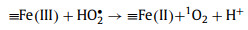 Combining all the above investigations and analyses, the mechanism of FeSxOy-1:1-based Fenton system can be summarized. The degradation of organics by FeSxOy-1:1 was primarily conducted by activating H2O2 to generate strong oxidizing •OH and 1O2. H2O2 diffused from the bulk fluid to the stable layer and was decomposed by ≡Fe(Ⅱ) on the surface of FeSxOy-1:1 to produce •OH (Eq. 2). S vacancy seized one electron of hydrogen peroxide to generate HO2• (Eq. 3). Then, ≡Fe(Ⅲ) obtain one electron from HO2• and produce 1O2 (Eq. 4) [27]. Meanwhile, ≡Fe(Ⅱ) can leach to produce Fe2+, which diffused into the bulk fluid to decompose H2O2 and generate •OH (Eqs. 5 and 6). Abundant defect electrons participated in the ≡Fe(Ⅱ)/≡Fe(Ⅲ) cycle on the surface of FeSxOy-1:1: ≡Fe(Ⅲ) on the surface of FeSxOy-1:1 obtain an electron to regenerate ≡Fe(Ⅱ) (Eq. 7). This spontaneous iron circulation behavior maintained timely regeneration of ≡Fe(Ⅱ) on the surface of FeSxOy-1:1, which indicated that FeSxOy-1:1-based Fenton system may have the potential for promising long-term effective degradation.
