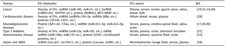 Table 1 EVs biomarkers in a sample of human disease. |