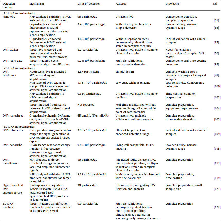 Table 2 A sample of DNA nanostructures used in the detection of EVs. |