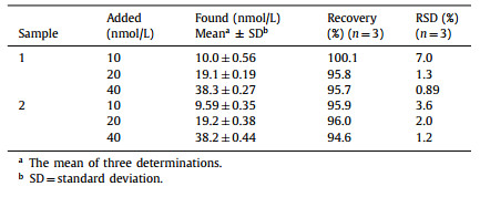 Table 1 Detection of let-7a in the serum samples. Concentrations: DNAzyme, 25 nmol/L; blocker, 30 nmol/L; fuel strand, 50 nmol/L; substrate strand, 50 nmol/L; Zn2+, 1.25 mmol/L; let-7a, 10, 20, 40 nmol/L. Time: 30 min. Temperature: 37 ℃. |