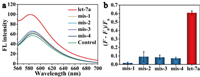 Then the selectivity of the cascade DNAzyme amplifier for let-7a detection was evaluated by discrimination with other four mismatched miRNA sequences with high homology at the same concentrations. Compared with the target let-7a, the changes of fluorescence signal triggered by one-base-mismatched (mis-1), two-base-mismatched (mis-2), three-base-mismatched (mis-3) and four-base-mismatched (mis-4) were much lower than those triggered by let-7a (Figs. 5a and b), which could be attributed to the high stability of the TSDR, indicating the excellent selectivity of the cascade DNAzyme amplifier even to single-base mismatched DNA strands.