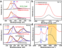 | Fig. 3. The XPS spectra of (a) O 1s, (b) Na 1s and (c) Pd 3d for Pd(Na)/rGO-ZnCr2O4 and the corresponding Na-free catalyst. (d) In situ DRIFTS of CO chemisorption over Pd(Na)/rGO-ZnCr2O4 and the corresponding Na-free catalyst. | |