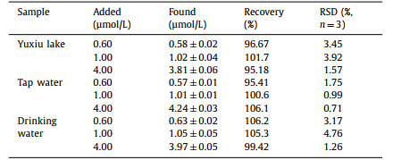 Table 1 Determination of S2− in actual water samples. |