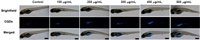Fig. 5 shows that zebrafish larvae treated with different concentrations of CQDs exhibit blue fluorescence signal, the fluorescent intensity in the zebrafish larva rise with the increase of CQDs' concentration. In particular, the yolk sac shows the strongest blue fluorescence signal, compared to other tissues, which predominantly accumulated in the intestine and allow the CQDs to enter the digestive system to be metabolizable. In addition, CQDs could accumulate selectively in the eyes, which proves that the CQDs, having wonderful histocompatibility, can enter the eyes through the blood-ocular barrier. These results demonstrate that the CQDs are considered a potential fluorescent probe in biological imaging and other correlative biomedical applications. The biological imaging results demonstrated that the extracted CQDs had ultra-low toxicity and remarkable biocompatibility, which can be attributed to our extraction process is very green, no any chemical reagents are added, and natural biomass waste is used as the precursor.