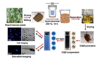 | Scheme 1. Illustration of the CQDs extraction from peach leaves waste and their use in biological imaging. | |