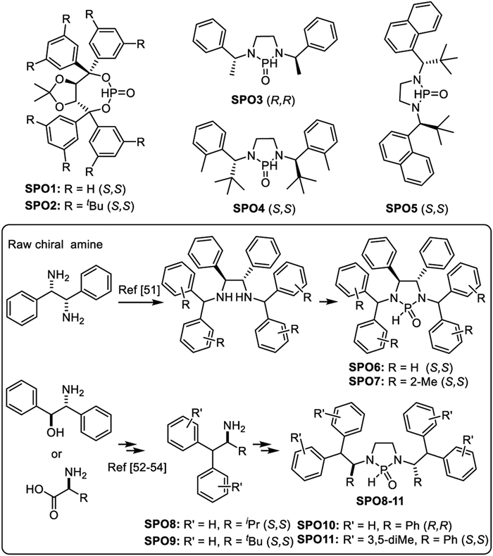 | Scheme 2. Traditional chiral SPO1-5 and synthesis of new chiral SPO6-11. | |