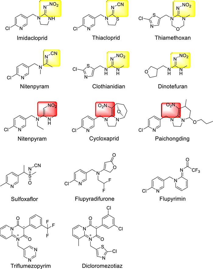 As for the neonicotinoids disclosed in past years (Fig. 1), the double bond in the nitromethylene group plays an important role in its mode of action. As the bond forms a conjugated system that facilitates electron flow toward the nitro group and renders the planarity of the pharmacophore, the double bond is presumably indispensable for bioactivity [11-13]. Nitromethylene proved to be one of the most effective electron-withdrawing fragments, neonicotinoids containing this scaffold were called nitromethylene neonicotinoids [14,15].