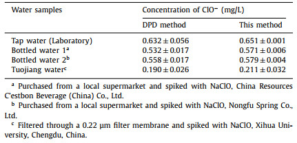 Table 1 Determination of hypochlorite concentration in representative water samples. |