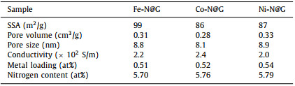 Table 1 Structure features and chemical composition of M-N@Gs. |