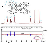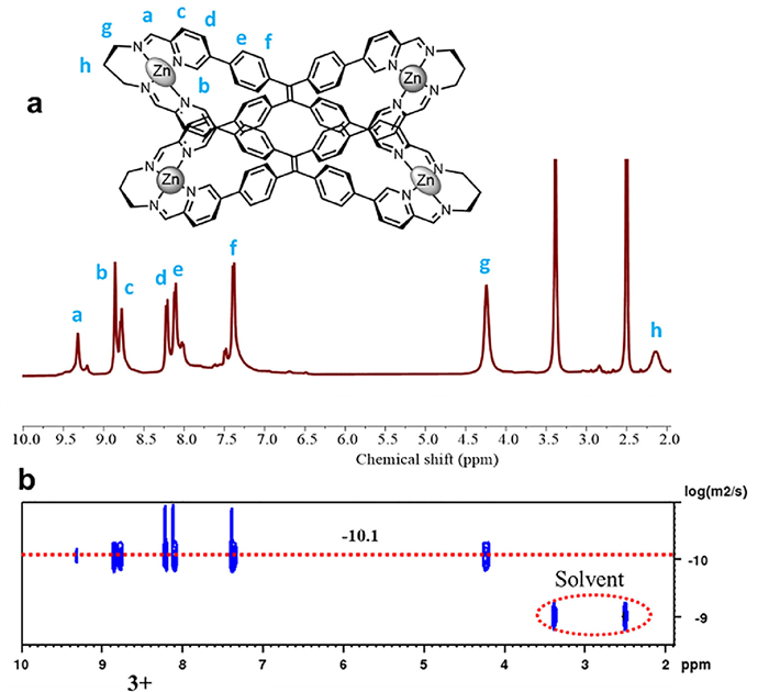 | Fig. 1. (a) 1H NMR spectrum and (b) 2D DOSY spectrum of TPE-Zn4. | |