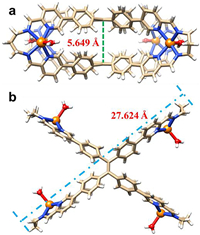 | Fig. 2. Crystal structure of TPE-Zn4: View along with axis (a) a and (b) b, respectively. | |