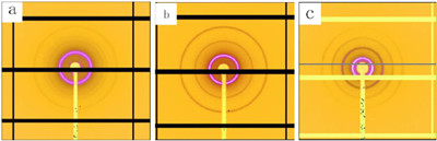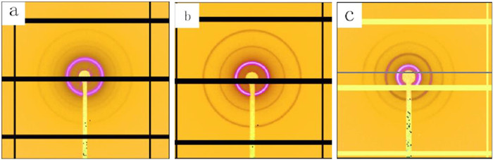 | Fig. 2. 2D SAXS patterns of (a) E113V130T66, (b) E113V130T104 and (c) E113V130T215 at 30 ℃. | |