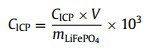 where CCP and CICP are the lithium capacity (mgLi/gLiFePO4) calculated according to the CP and ICP-AES test results, respectively; t is the time of releasing Li+ in the recovery solution (s); cICP is the concentration of Li+ in the recovery solution (mol/L); V is the volume of recovery solution (L); mLiFePO4 is the mass of LiFePO4 on WE (g).