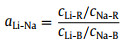 where α is the separation coefficient of Li+ and Na+, cLi-R and cNa-R are the concentration of Li+ and Na+ in the recovery solution, cLi-B and cNa-B are the concentration of Li+ and Na+ in the brine.
