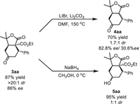 The absolute configuration was unambiguously confirmed by the X-ray structures of 3ae and 3ay. The lactone and six-ring were syn-ring fused bicylic butrolactone (Fig. 2). In order to investigate the further transformation of obtained chiral bicyclic γ-butyrolactones, 3aa was decarboxylated under certain conditions to obtain 4aa. Moreover, product 3aa was reduced to alcohol 5aa by NaBH4 in methanol (Scheme 3).
