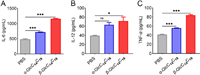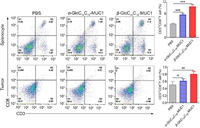 | Fig. 7. FACS detects the ratio of CD3+/CD8+ T cells in splenocytes and tumor tissues collected from the immunized mice. Data are presented as the mean ± SD (n = 3). Differences among groups are determined by one-way ANOVA analysis, *P < 0.05, **P < 0.01, ***P < 0.001. | |