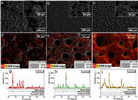 | Fig. 1. SEM images (a–c), EDS mapping (d–f) and XRD patterns (g–i) of PLIED electrodes, (a, d, g) PLIED(1), (b, e, h) PLIED(2), and (c, f, i) PLIED(3). | |