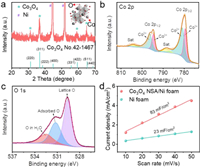 | Fig. 3. (a) XRD pattern, high-resolution (b) Co 2p and (c) O 1s XPS spectra, and (d) double-layer capacitance of the Co3O4 NSA/Ni foam. | |