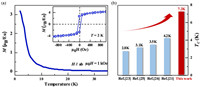 | Fig. 2. Enhanced ferromagnetic properties in ETO-0.35EO thin film. (a) M-T curve of an ETO-0.35EO film. Measurements were performed under a magnetic field of µ0H =1 kOe along the in-plane direction after field cooling. Inset shows the M-H hysteresis loop at 2 K. (b) Comparison of TC of ETO-0.35EO film with previous studies [21,23,25,26]. The magnetic transition temperature of interphase strain-engineered ETO films is increased by 70%. | |