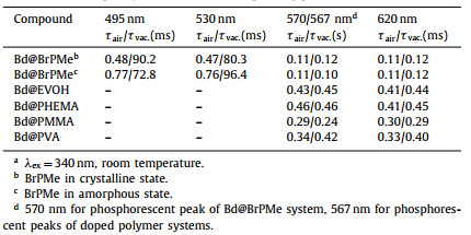 Table 1 Lifetimes of Bd doped systems at their corresponding peaks.a |