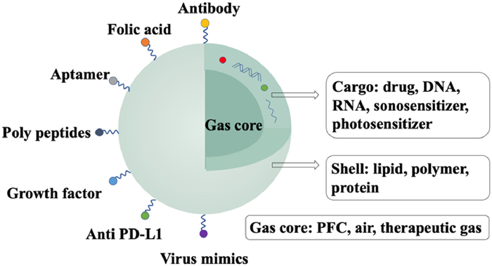 Concentrating on a single component with several functions is an additional method of creating theranostic MBs. Numerous studies focusing on the gas core have been proposed in light of the structure of MBs.
