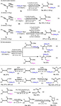| Scheme 5. Gram-scaled synthesis of allene compounds and their derivatization. | |