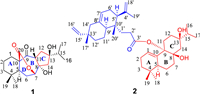 Table 1 1H (400 MHz) and 13C (100 MHz) NMR data for 1 and 2 in CD3OD (δ in ppm, J in Hz). |