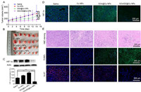| Fig. 4. (A) Tumor growth kinetics during various treatments. (B) The appearance of the tumors after various treatments. (C) The Western blot and (D) immunofluorescence assay to analyze the HIF-1α expression after various treatments. (E) H & E staining, TUNEL and Ki-67 fluorescent staining of the tumor tissues after various treatments. | |