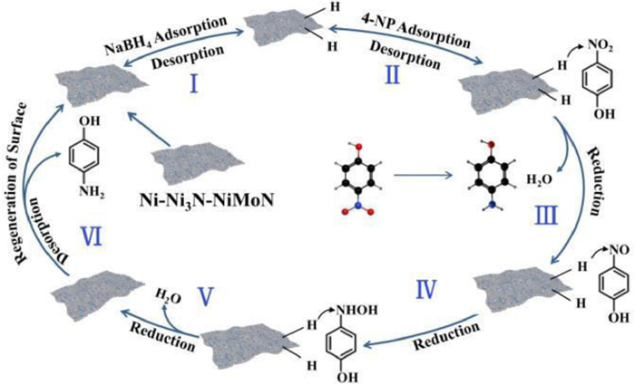 | Fig. 7. Proposed mechanism for the hydrogenation of 4-NP over Ni-Ni3N-NiMoN nanosheets. | |
