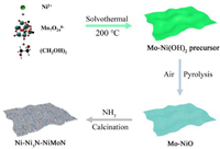 | Scheme 1. Schematic illustration of the preparation of 2D porous Ni-Ni3N-NiMoN heterojunction nanosheets. | |