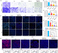 TNBC is an aggressive metastatic malignancy with a high recurrence rate, and most breast cancer-related deaths are caused by metastasis [25]. The migration and invasion abilities of 4T1 cells were evaluated using wound-healing and Transwell™ assays. The inhibitory effects of PAA@IONs+NRDL-Lip on migration and invasion abilities (Figs. 4a–e and Fig. S14 in Supporting information) were much stronger than those of either agent used alone. Furthermore, the wound-healing rate and number of migratory and invasive cells in the combined treatment group were significantly lower than those in the Dox control group (P < 0.05).