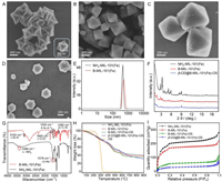 | Fig. 2. Characterization of β-CD@B-MIL-101(Fe)-OS. SEM image of (A) NH2-MIL-101(Fe), (B) B-MIL-101(Fe), (C) B-MIL-101(Fe)-OS, and (D) β-CD@B-MIL-101(Fe)-OS. (E) Average hydrodynamic diameter distribution of NH2-MIL-101(Fe) and B-MIL-101(Fe), respectively. (F) PXRD pattern of NH2-MIL-101(Fe), B-MIL-101(Fe), and β-CD@B-MIL-101(Fe)-OS respectively. (G) FT-IR of NH2-MIL-101(Fe) and B-MIL-101(Fe), respectively. (H) TGA and (I) N2 adsorption−desorption isotherms of NH2-MIL-101(Fe), B-MIL-101(Fe), B-MIL-101(Fe)-OS and β-CD@B-MIL-101(Fe)-OS, respectively. | |
