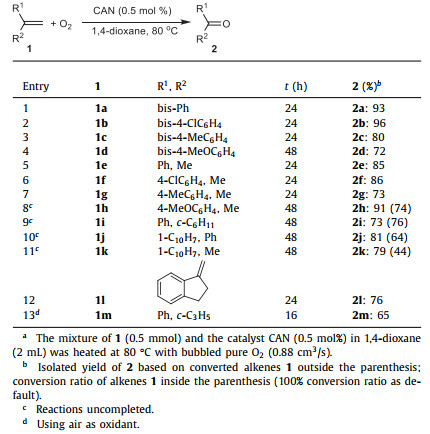 Table 2 CAN-catalyzed oxidation of 1,1-disubstituted ethenesa. |