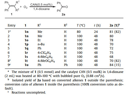 Table 3 CAN-catalyzed oxidation of tri- and tetra-substituted ethenesa. |