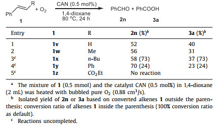 Table 4 CAN-catalyzed oxidation of styrene and its derivativesa. |