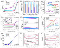 where j, jL and jK are the measured current, diffusion-limited current and kinetics current densities, respectively. ω represents the rotation speed (rpm), F stands for the Faraday constant (F = 96,484), C0 is the saturated O2 concentration (pH 13, 1.2 × 10−6 mol/cm3; pH 0, 1.05 × 10−6 mol/cm3), D0 is the diffusion coefficient of O2 in electrolyte (pH 13, 1.9 × 10−5 cm2/s; pH 0, 1.4 × 10−5 cm2/s), and ν is the kinematic viscosity (0.01 cm2/s).